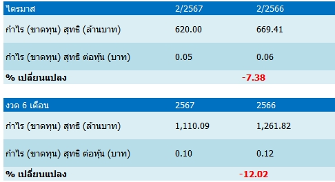 โดยบริษัทมีกำไรลดลงเนื่องจากรายได้รวมสำหรับไตรมาส 2/67 อยู่ที่ 2,442 ล้านบาท ลดง 2% เทียบกับงวดเดียวกันของปีก่อนอยู่ที่ 2,499 ล้านบาท โดยเป็นผลมาจากรายได้จากการขายอสังหาริมทรัพย์ในไตรมาส 2/67 อยู่ที่ 2,006 ล้านบาท ลดลง 5% จากช่วงเดียวกันของปีก่อนอยู่ที่ 2,120 ล้านบาท เนื่องจากรายได้จากการขายบ้านพร้อมที่ดิน และรายได้จากการขายคอนโดมิเนียมลดลงเมื่อเปรียบเทียบกับงวดเดียวกันของปีก่อน