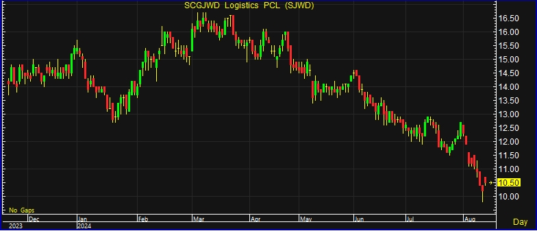 ผู้สื่อข่าวรายงาน บริษัท เอสซีจี เจดับเบิ้ลยูดี โลจิสติกส์ จำกัด (มหาชน) หรือ SJWD อยู่ที่ระดับ 10.50 บาท บวก 0.30 บาท หรือ 2.94% ราคาสูงสุด 10.70 บาท และราคาต่ำสุด 10.40 บาท ด้วยมูลค่าการซื้อขาย 9.56 บาท