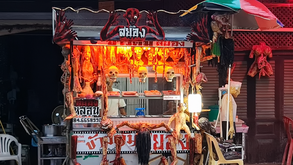 อึ้งตาค้าง! ข้าวต้มกุ๊ย โชว์ศิลปะสยอง เต็มหน้าร้าน ทำเป็นรูปผีปอบ ผีกระสือ ผีเปรต ชวนหลอน กินไปขนลุกไป ลูกค้าติดใจรสชาติ ถ้าร้านปิด ก็ไม่กินร้านอื่น