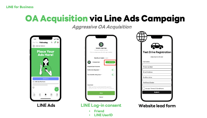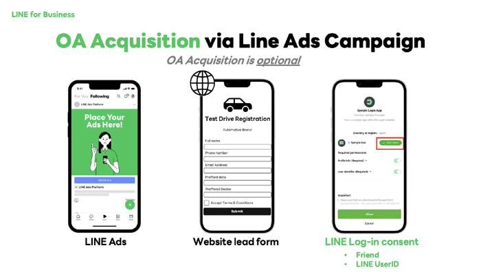 ปัจจุบัน นอกเหนือจากความท้าทายในการเก็บ Leads ด้วยต้นทุนที่คุ้มค่าและคุณภาพที่ดี แบรนด์รถยนต์ยังเจอความท้าทายในการทำให้ Leads เปลี่ยนเป็นยอดขายให้ได้ตามที่คาดหวัง ซึ่งจุดที่เป็นอุปสรรคหลักคือ ช่องทางการติดต่อของดีลเลอร์ที่มีความหลากหลายและยังไม่เป็นระบบ ซึ่งส่วนใหญ่มักใช้เป็นเบอร์โทรศัพท์หรือ LINE ส่วนตัวของพนักงานขายของแต่ละดีลเลอร์ ทำให้ไม่สามารถเก็บข้อมูลหรือติดตามสถานการณ์ตัดสินใจซื้อของลูกค้าได้อย่างเป็นระเบียบและมีประสิทธิภาพเท่าที่ควร โดยเฉพาะอย่างยิ่ง เมื่อพนักงานขายมีการโยกย้ายหรือเปลี่ยนงาน Leads ต่างๆ มักจะหายไปกับพนักงานขายนั้นๆ ด้วย ดังนั้น การทำให้แน่ใจว่า Leads ที่ได้จากแคมเปญ มีการเพิ่มเพื่อน LINE OA เพื่อความต่อเนื่องในการสื่อสารระหว่างแบรนด์รถยนต์และ Leads ได้จึงเป็นสิ่งสำคัญ อีกทั้ง แบรนด์รถยนต์เป็นจำนวนมาก เริ่มใช้เครื่องมืออย่าง LINE Log-in เข้าไปพัฒนาร่วมกับการลงทะเบียนกรอกฟอร์มของ Leads เพื่อช่วยให้การเพิ่มเพื่อน รวมถึงการเก็บข้อมูลอย่าง LINE UserID เป็นไปอย่างราบรื่น โดยแบรนด์สามารถนำมาต่อยอดเพื่อสร้างประสบการณ์ที่ดีให้กับ Leads ต่อไปได้ โดยแบรนด์สามารถเลือกใช้เครื่องมือ LINE Log-in เพื่อให้ลูกค้ากดยินยอมทั้งในขั้นตอนก่อนหรือหลังการกรอกแบบฟอร์มได้ตามต้องการ