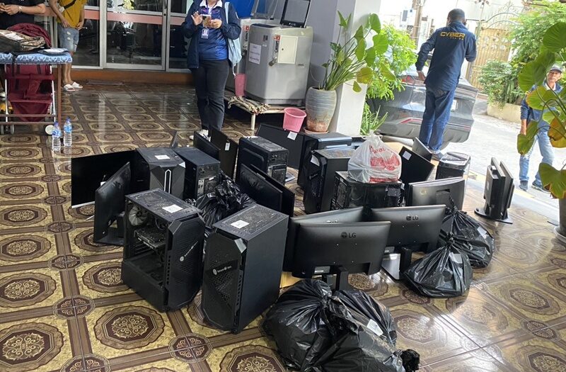 จุดที่ 3. ห้องพักในอพาร์ตเมนต์แห่งหนึ่ง ในพื้นที่ หมู่ 3 ซอยร่วมจิตรพัฒนา เทพารักษ์ จ.สมุทรปราการ ได้ตรวจยึดเครื่องคอมพิวเตอร์ โน้ตบุ๊ก พร้อมอุปกรณ์ส่วนควบ 10 เครื่อง , โทรศัพท์มือถือ 6 เครื่อง , เครื่องส่งสัญญาณไวไฟ เราเตอร์ 6 เครื่อง, กล้องวงจรปิดและอื่นๆ อีกหลายรายการ รวมมูลค่าทรัพย์สินที่ตรวจยึดได้ทั้งหมดกว่า 100 ล้านบาท