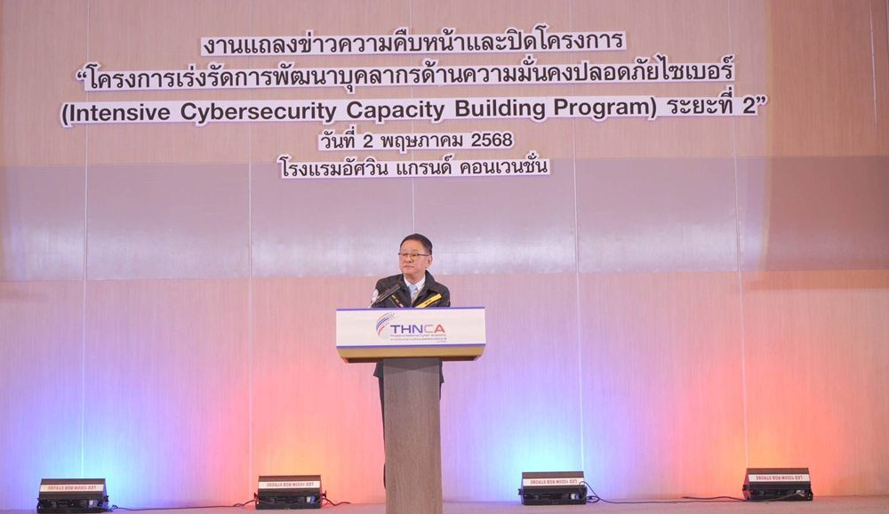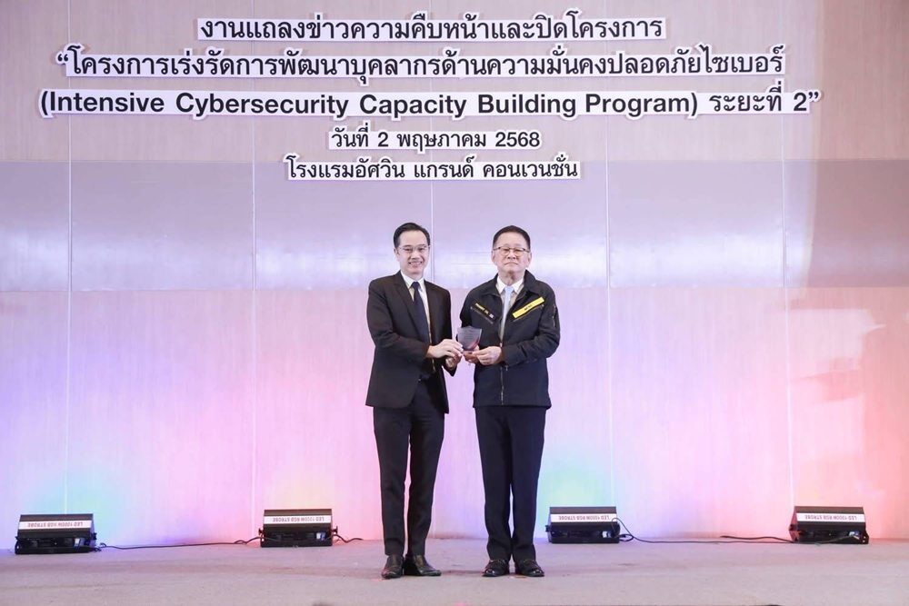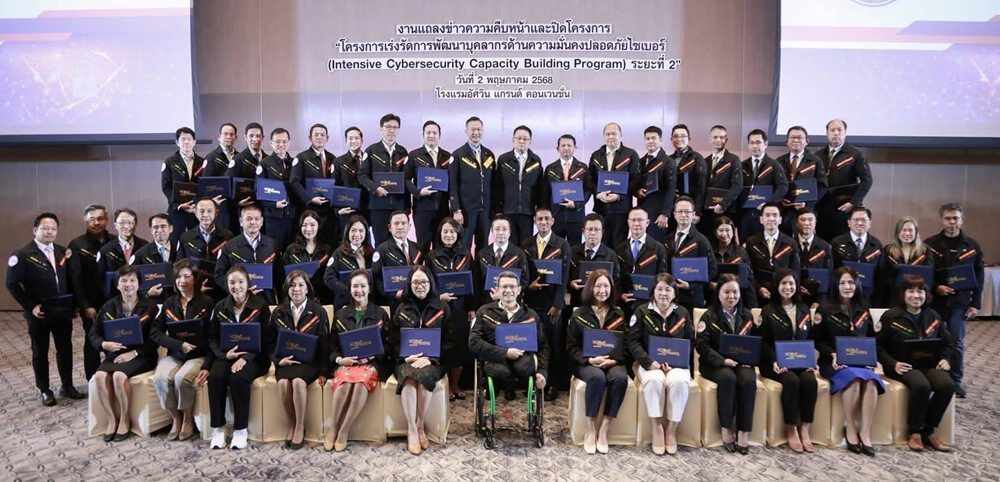 วันที่ 2 พ.ค.68 ที่ห้องอัศวิน แกรนด์ บอลรูม โรงแรมอัศวิน แกรนด์ คอนเวนชั่น หลักสี่ กรุงเทพฯ สำนักงานคณะกรรมการการรักษาความมั่นคงปลอดภัยไซเบอร์แห่งชาติ (สกมช.) แถลงความสำเร็จและปิดโครงการเร่งรัดการพัฒนาบุคลากรด้านความมั่นคงปลอดภัยไซเบอร์ ระยะที่ 2 (Intensive Cybersecurity Capacity Building Program II)