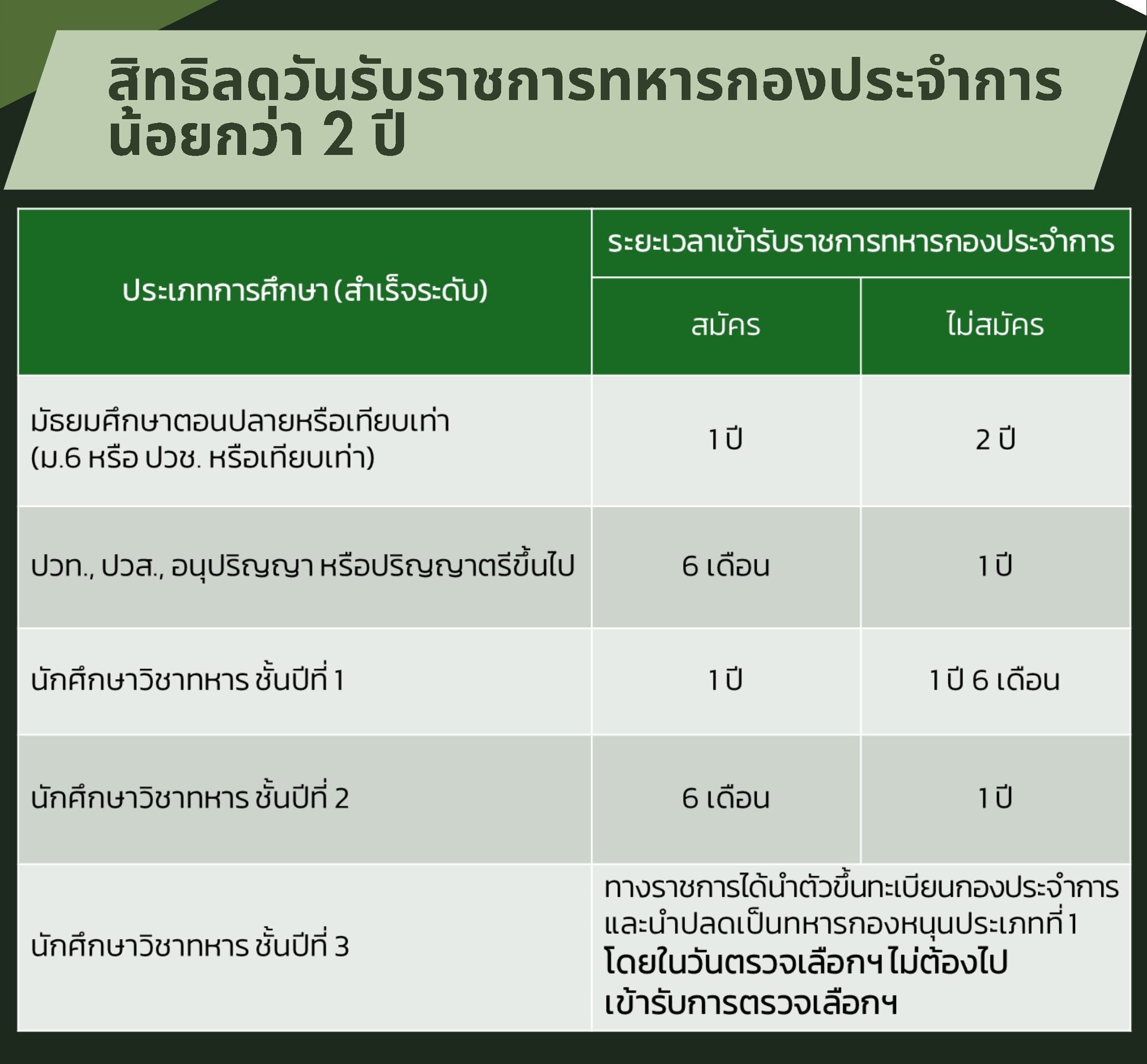โดยสามารถสอบถามรายละเอียดเพิ่มเติมได้ที่หน่วยสัสดีเขต/อำเภอ, สำนักงานสัสดีกรุงเทพฯ/จังหวัด กองการสัสดี หน่วยบัญชาการรักษาดินแดน โทร. 02-2233259