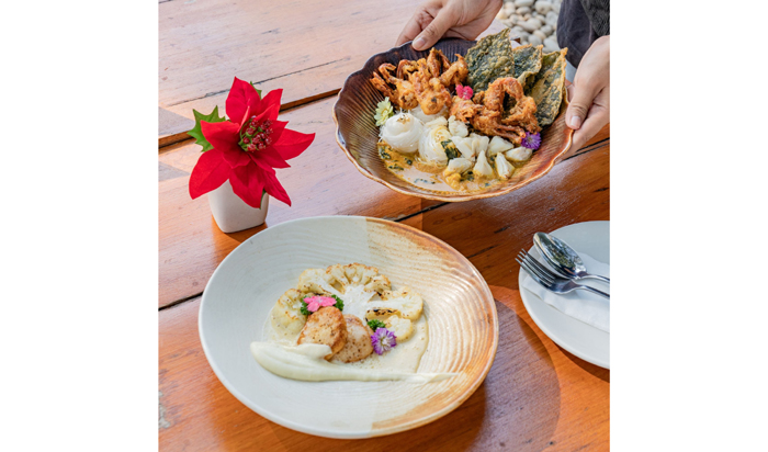 2. Ivory Coast Almond Restaurant & Chill Bar – ครีเอทเมนูแกงคั่วใต้ใบชะพลูปูนิ่มทอด และชูใจดอกไม้ย่าง ที่ใช้ผักและดอกไม้เหลือใช้มาสร้างสรรค์ใหม่