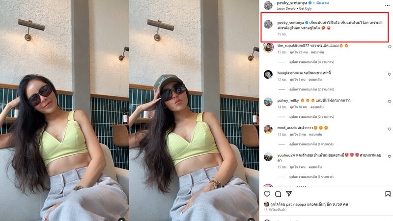 “เก็บแฟนเก่าไว้ในใจ เก็บแฟนใหม่ไว้อก เพราะว่าสวรรค์อยู่ในอก นรกอยู่ในใจ” นอกจากคอมเมนต์แห่ชมความสวยแล้ว