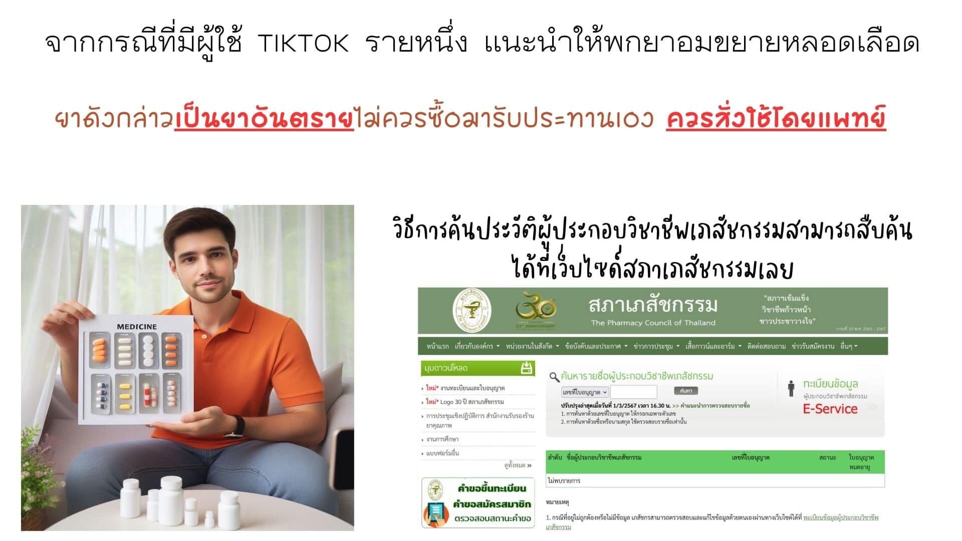 ทั้งนี้ เพจเฟซบุ๊ก Pharma Plus ออกมาระบุต่อประเด็นดังกล่าวด้วยว่า ยาดังกล่าวเป็นยาอันตรายควรให้แพทย์พิจารณาในการจ่ายหากต้องการตรวจสอบว่าเป็นเภสัชกร สามารถตรวจสอบได้ง่ายๆที่เว็บไซต์ ของสภาเภสัชกรรม