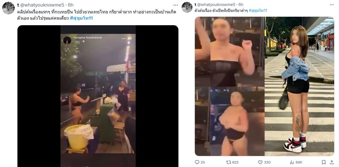 จนเกิดการเอาคืนกันเป็นเรื่องราวระอุโซเชียลและย่านสุขุมวิทเมื่อคืนที่ผ่านมา ขณะที่ในโซเชียลมีการแห่แชร์คลิปต้นเรื่อง ที่ระบุ