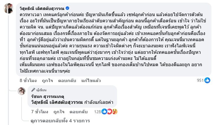 ล่าสุด เจนนี่ ไลฟ์พูดคุยกับ กรตี้ บางช่วงบางตอน เจนนี่ ก็บอกกับ กรตี้ ว่า “ลูกค้าเธอฟ้องฉัน ฉันผิดอะไร การโอนเงินคืนมันต้องใช้เวลา แกจะให้ปุ๊บปั๊บเลยเหรอ ทำไมแกเคลียร์ไม่ได้ เราพยายามเร่งทุกอย่างนะ ทำไมฉันต้องมาเจอปัญหาแบบนี้ด้วย” กรตี้ ก็อ้างว่า ทำไมต้องมาเจอปัญหาที่ไม่ใช่ปัญหาของตัวเองทั้งหมด เจนนี่ ไม่ฟังคำอธิบาย นั้น