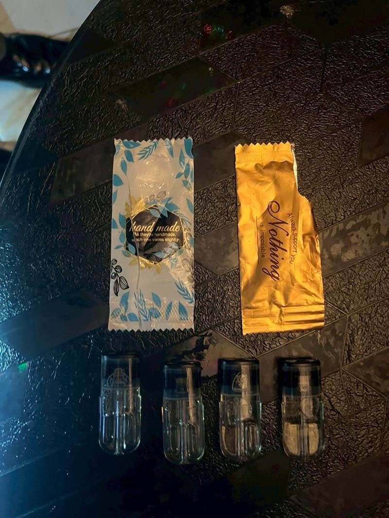 สอบสวนเบื้องต้นทราบว่าได้ชักชวนกันมาร่วมงานปาร์ตี้วันเกิด เป็นลักษณะส่วนตัวของกลุ่มเพื่อนที่รู้จักกัน ภายในห้องคาราโอเกะร้านดังกล่าว เจ้าหน้าที่ตำรวจจึงตรวจค้นภายในร้าน พบหัวน้ำยาบุหรี่ไฟฟ้าจำนวน 4 หัว ซึ่งน้ำยาสันนิษฐานว่าเป็นวัตถุออกฤทธิ์ในประเภทที่ 2 วางไว้บริเวณหน้าห้องน้ำภายในร้าน ไม่ทราบว่าเป็นของผู้ใด