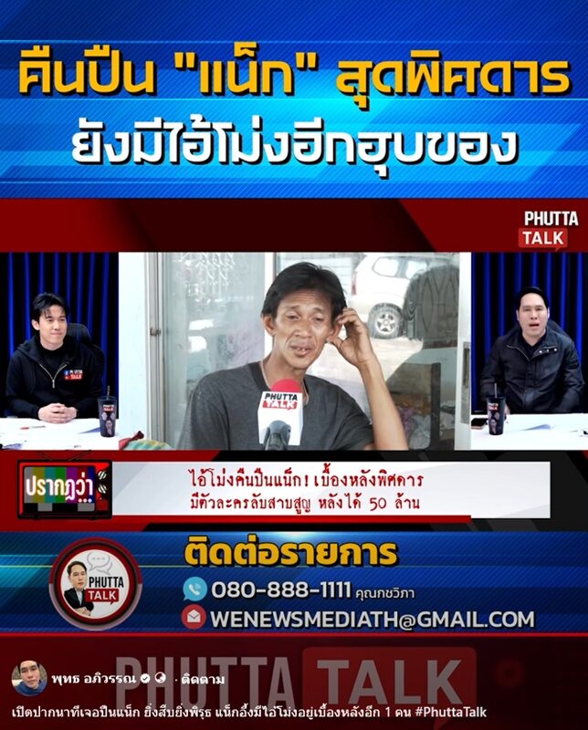 พร้อมทั้งโพสต์คลิปตอนหนึ่งในรายการ พร้อมแคปชั่นว่า “เปิดปากนาทีเจอปืนแน็ก ยิ่งสืบยิ่งพิรุธ แน็กอึ้งมีไอ้โม่งอยู่เบื้องหลังอีก 1 คน #PhuttaTalk”