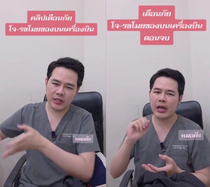 วันที่ 15 มี.ค. 2569 ผู้สื่อข่าวรายงานว่า ผู้ใช้บัญชี TikTok ชื่อ “มอร์ทเทฟเซจ หมอต๊ะ The V-Sage Clinic” ของ นพ.ทรงวุฒิ พรมโท หรือ “หมอต๊ะ” เจ้าของคลินิก โพสต์เล่าเหตุการณ์เตือนภัยผู้โดยสารสายการบิน หลังโดนลักทรัพย์เงินสด 200,000 บาท ขณะอยู่บนเครื่องบิน