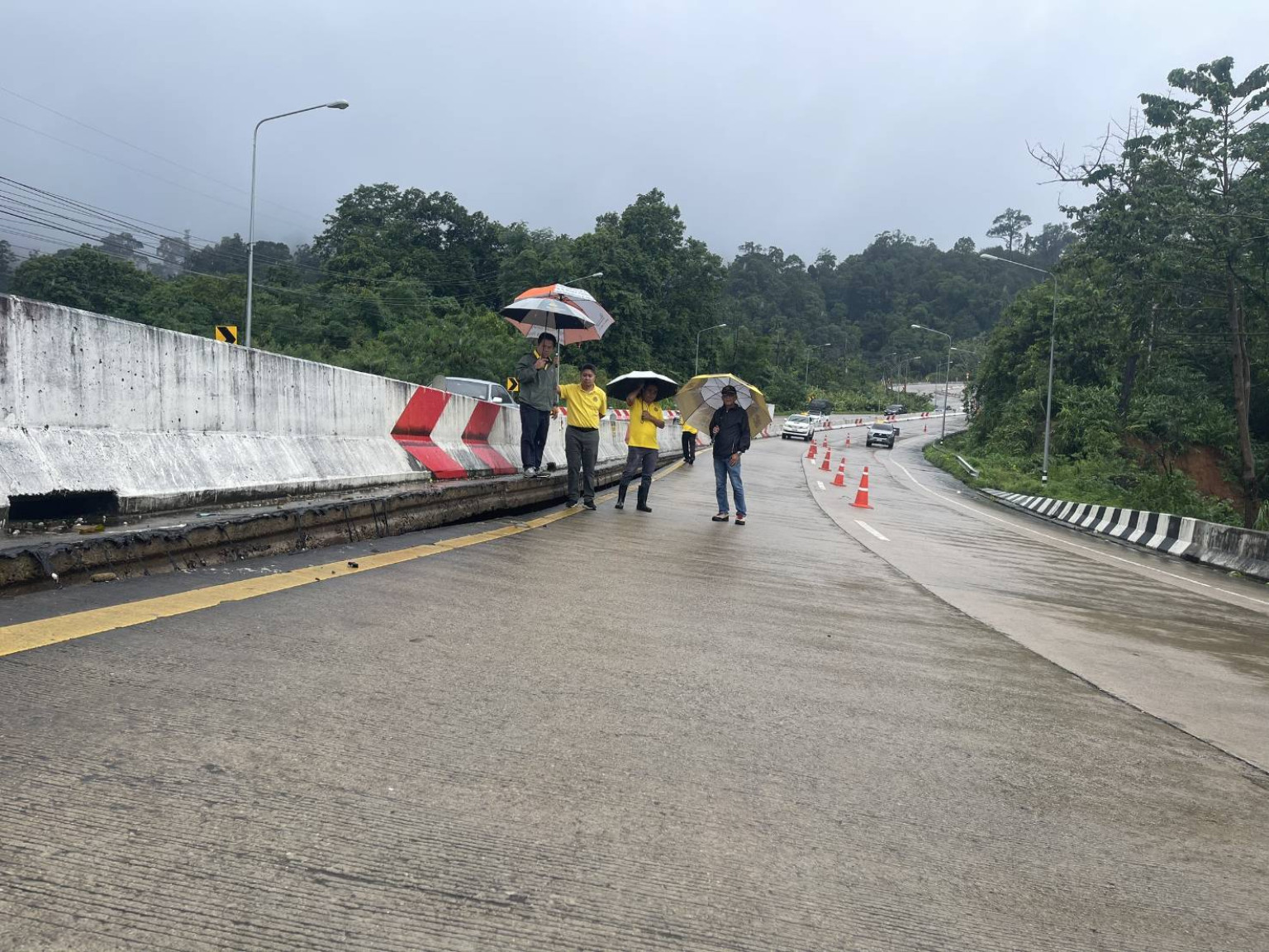 ถนนเส้นทางหลวง ตาก-แม่สอด มีรอยแตกและทรุดตัว -ผู้ใช้เส้นทาง เดินทางด้วยความระมัดระวัง