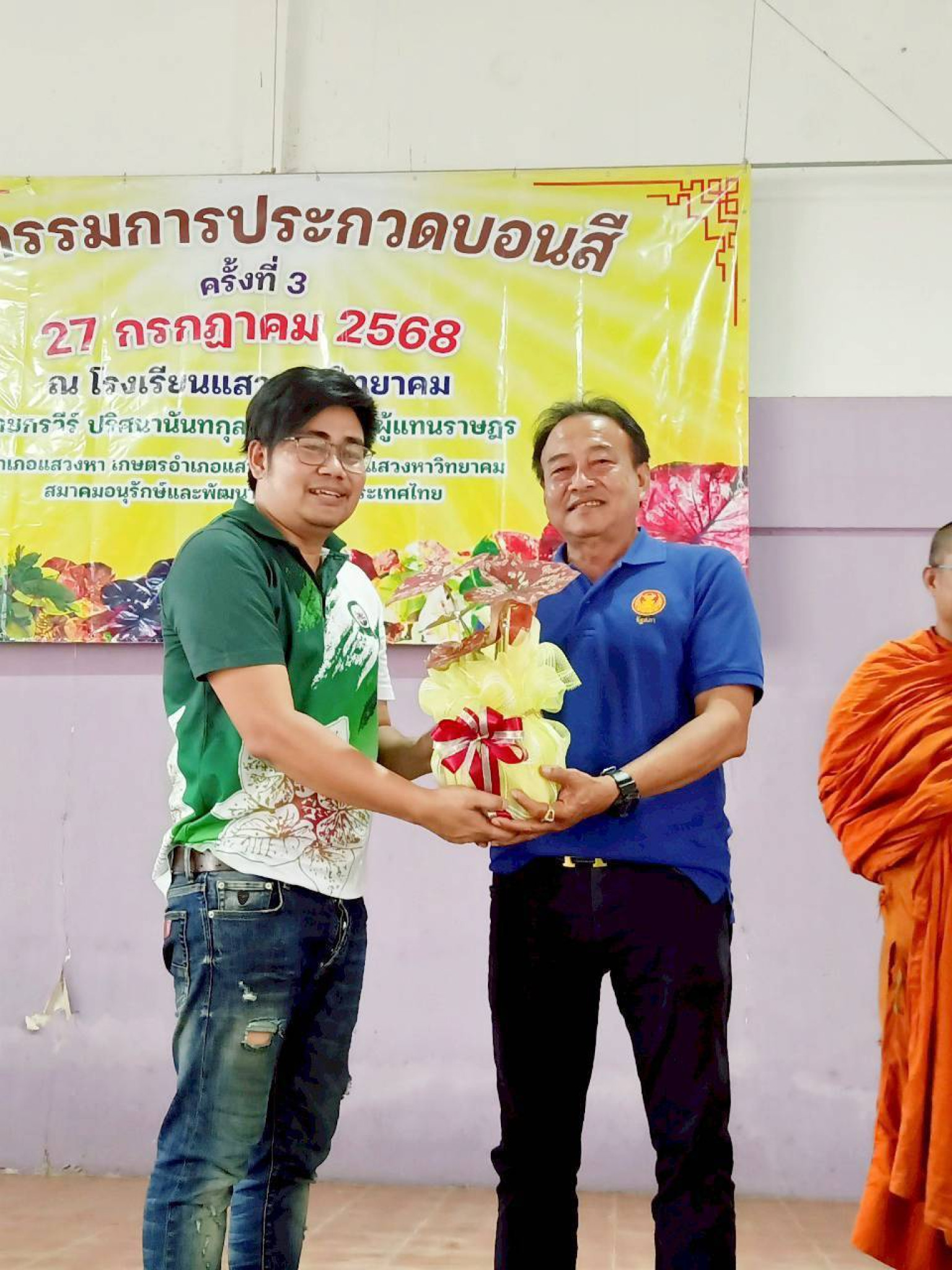 วันที่ 27 กรกฎาคม 2568 นายนรินทร์ อร่ามโชติ นายอําเภอแสวงหา เป็นประธานมอบรางวัลการประกวดบอนสี และเปิดงานจังหวัดอ่างทอง ครั้งที่ 1 มี พระมหาไพรวัลย์ โชติปัญโญ เจ้าอาวาสวัดพวงทอง นายกชเดชา กลุ่มไหม นายกเทศมนตรีตำบลเพชรเมืองทอง สมบัติ อรจันทร์ พร้อมด้วยพี่น้องประชาชน สมาคมอนุรักษ์และพัฒนาบอนสีแห่งประเทศไทยหัวหน้าส่วนราชการ ผู้บริหารองค์กรปกครองส่วนท้องถิ่น กํานัน ผู้ใหญ่บ้านผู้นําชุมชน เข้าร่วมกิจกรรม ณ โรงเรียนแสวงหาวิทยาคม ตําบลแสวงหาอำเภอแสวงหา จังหวัดอ่างทอง