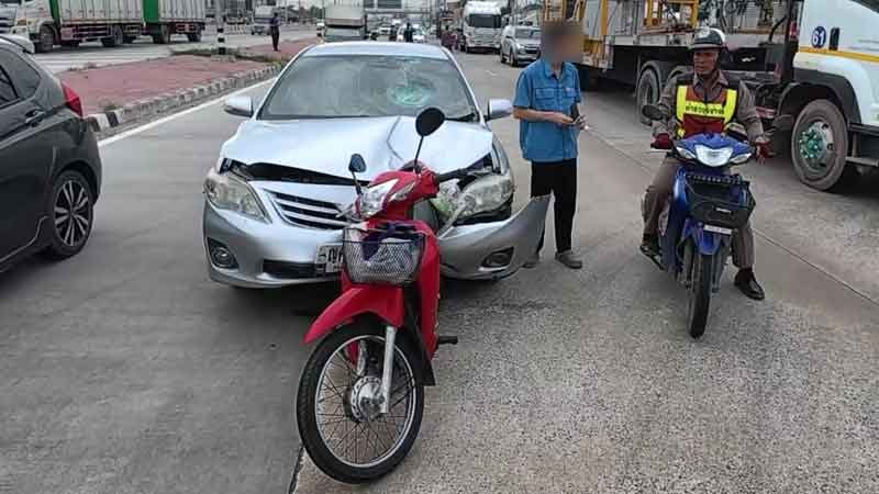 สลด หนุ่มวัยเบญจเพส ซิ่งเก๋งพุ่งเสยท้าย ตา76 ลากรถจยย.ไปไกล 50 เมตร เสียชีวิต คนขับเผย เบรกไม่ทัน จยย.ออกมาจากซอย แล้วตัดเข้าเลนขวาอย่างกะทันหัน
