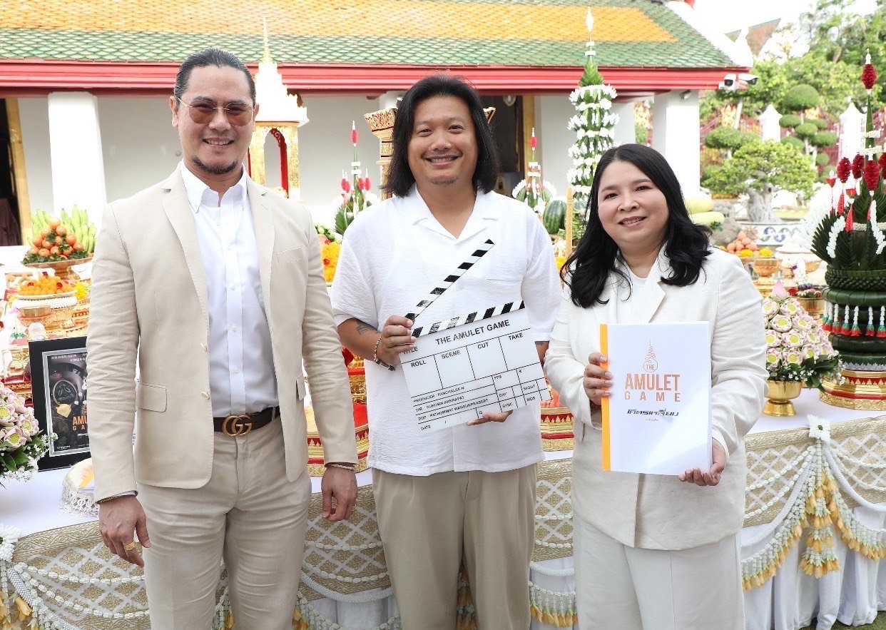 นก-ปัญชลีย์ นิธิจิระโรจน์ โปรดิวเซอร์ ผู้ควบคุมการผลิต พร้อมด้วย อาจารย์โก้-คุณณัทกฤช ตันติกรพรรณ กรรมการบริษัท สตูดิโอ59 ได้ฤกษ์งามยามดีจัดพิธีบวงสรวงพร้อมเปิดตัวภาพยนตร์เรื่อง THE AMULET GAME ( ดิ อะมิวเล็ท เกม) ผลงานเรื่องแรกจากค่าย “STUDIO59” (สตูดิโอ 59) ณ บริเวณหน้าโบสถ์น้อย วัดอรุณราชวราราม