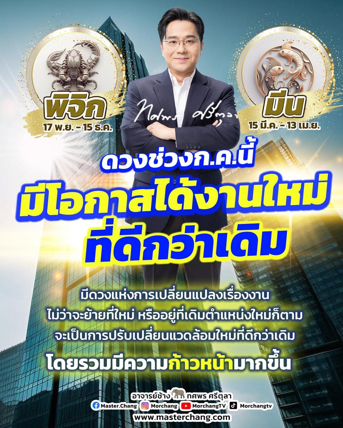 หมอช้าง เปิด 2 ราศี ช่วงนี้มีโอกาสได้งานใหม่ดีกว่าเดิม มีความก้าวหน้า ดวงแห่งการแปลี่ยนแปลง
