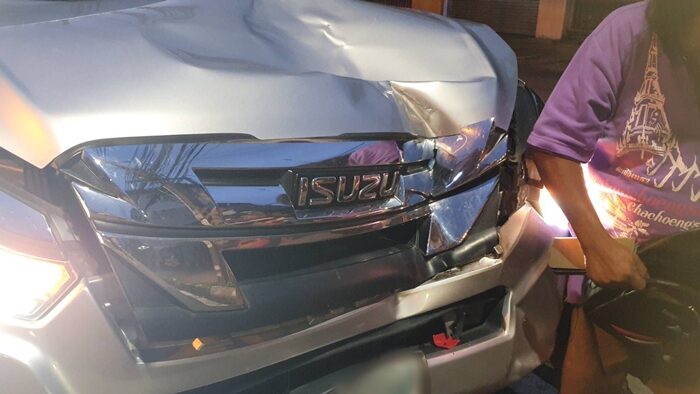 ที่เกิดเหตุพบร่างผู้เสียชีวิตชื่อ นายสง่า (ขอสงวนนามสกุล) อายุ 67 ปี อดีตครูเกษียนอายุราชการ สภาพศพนอนเสียชีวิต หน้าผากขวามีแผลเจาะลึก ที่หน้าอกมีรอยล้อรถเหยียบ ใกล้กันพบรถกระบะ ยี่ห้ออีซูซุ ดีแม็กซ์ ทะเบียน ชลบุรี สภาพด้านหน้ารถมีรอยชนพังยับ ด้านท้ายกระบะรถมีสินค้าประเภทอาหารเต็มคันรถ
