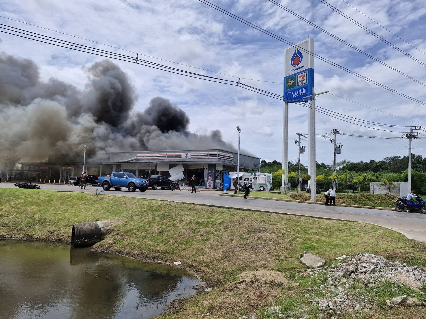 จากการสอบถามประชาชนที่เข้ามาใช้บริการที่ปั๊มน้ำมัน กล่าวว่า เมื่อเช้าขณะที่กำลังขับรถเข้ามาเติมน้ำมันตามปกติ ก็ได้ยินเสียงระเบิด ก่อนจะเห็นกลุ่มควันและไฟลุกไหม้ร้านสะดวกซื้อ