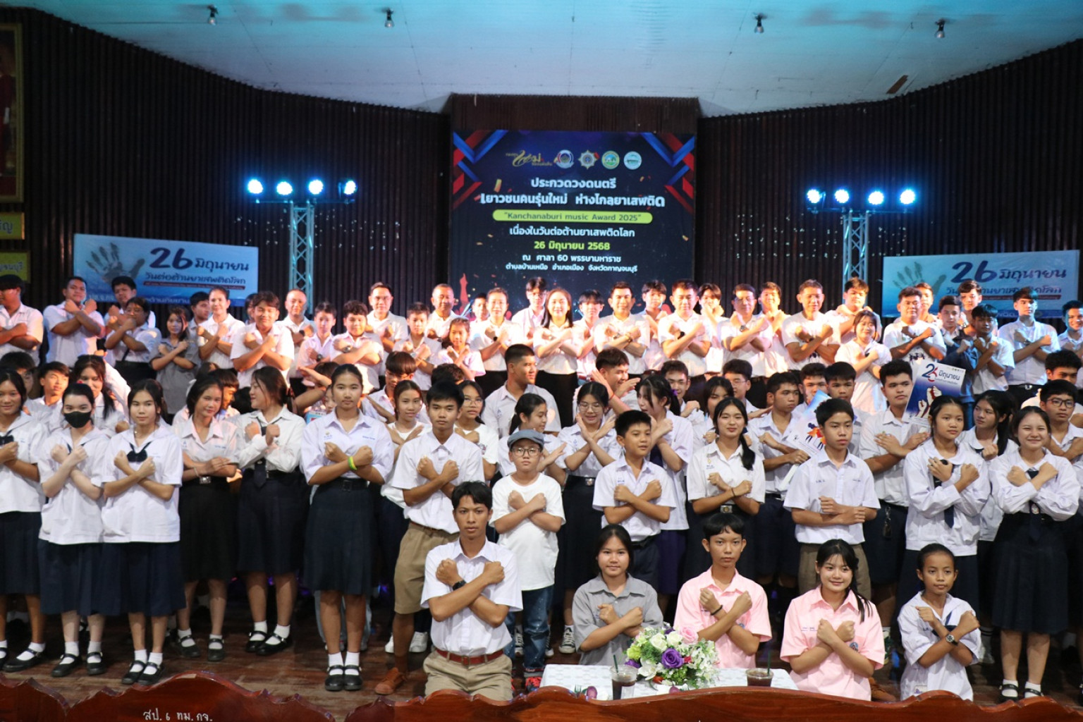 ผู้ว่าราชการจังหวัดกาญจนบุรี เปิดโครงการประกวดวงดนตรี เยาวชน คนรุ่นใหม่ ห่างไกลยาเสพติด "Kanchanaburi Music Award 2025" พร้อมประกาศเจตนารมณ์ต่อต้านยาเสพติด เนื่องในวันต่อต้านยาเสพติดโลก ประจำปี 2568 ภายใต้กรอบแนวคิด "Stop Drugs, Start Power สร้างพลังไทย หยุดภัยยาเสพติด"