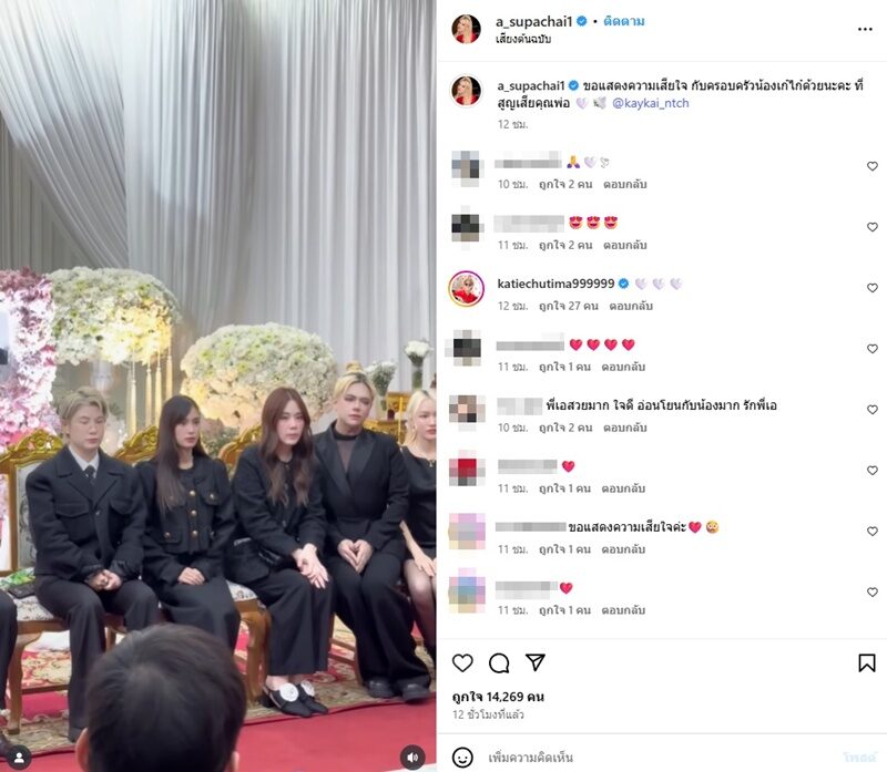 ด้าน เอ ศุภชัย ก็โพสต์คลิปไปร่วมอาลัยคุณพ่อของเก๋ไก๋ พร้อมแคปชั่นด้วยว่า “ขอแสดงความเสียใจ กับครอบครัวน้องเก๋ไก๋ด้วยนะคะ ที่สูญเสียคุณพ่อ @kaykai_ntch”