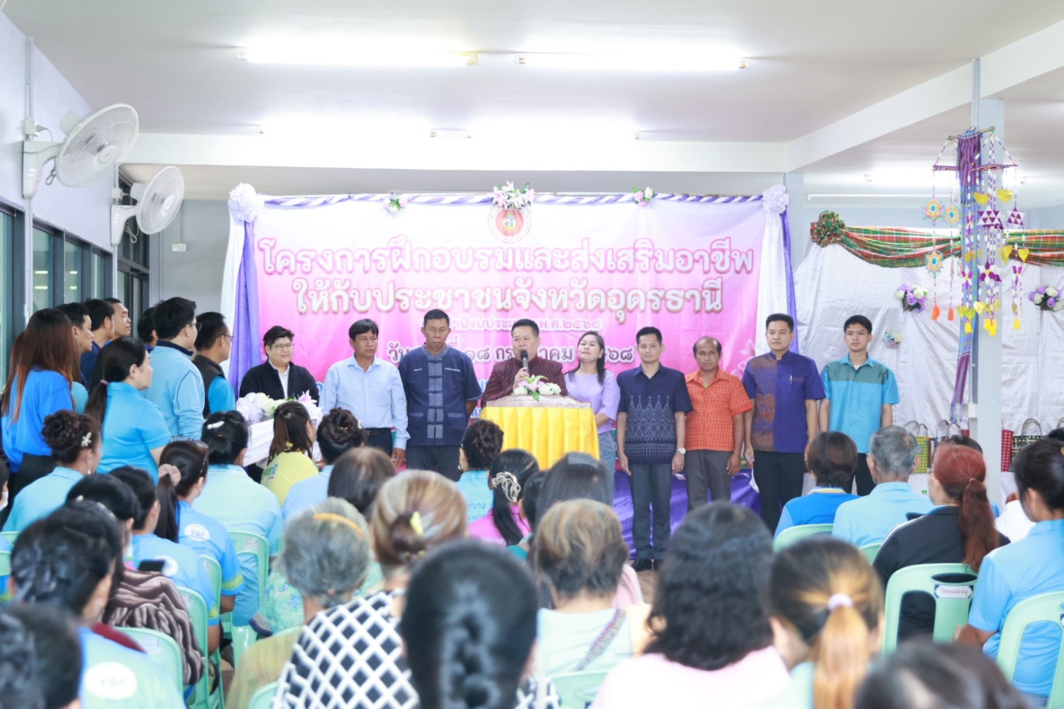 โดยมี นางสุธาทิภย์ วัฒนกูล รองประธานสภา อบจ.อุดรธานี / ส.อบจ.อุดรธานี อ.เมืองเขต 7 และคณะ ส.อบจ.อุดรธานี อ.เมือง เขต 2,3 ,4,6,9 และเขต 10 พร้อมด้วย จ.ส.อ.สามิตร ศรีสองเมือง หน.สป.อบจ.อุดรธานี นายณัฏฐกิตติ์ สิงห์คะนอง เลขานุการ อบจ.อุดรธานี หน.ฝ่ายปกครอง และบุคลากรเจ้าหน้าที่ อบจ.อุดรธานี ผู้นำท้องที่ ผู้นำท้องถิ่น คณะวิทยากรจาก ศูนย์ฝึกอาชีพ สมาคมรวมใจคนพิการ จ.อุดรธานี และประชาชน จ.อุดรธานี จำนวน 200 คน เข้าร่วมในโครงการ ฯ