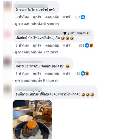 หลังจากนั้นไม่ในโพสต์ดังกล่าวมีผู้คนจำนวนมากเข้ามาแชร์ต่อแสดงความคิดเห็นวิพากษ์วิจารณ์กันไปต่างๆนานา ซึ่งคอมเมนต์ส่วนใหญ่ต่างบอกว่า อาจเป็นเพราะมุมกล้องก็เป็นได้เพราะดูจากขนาดของไข่แดงก็มีปริมาณที่เท่ากัน บางรายก็เข้ามาบอกว่า เนื้อจะวัดขนาดกันไม่ได้ต้องชั่งน้ำหนัก เป็นต้น