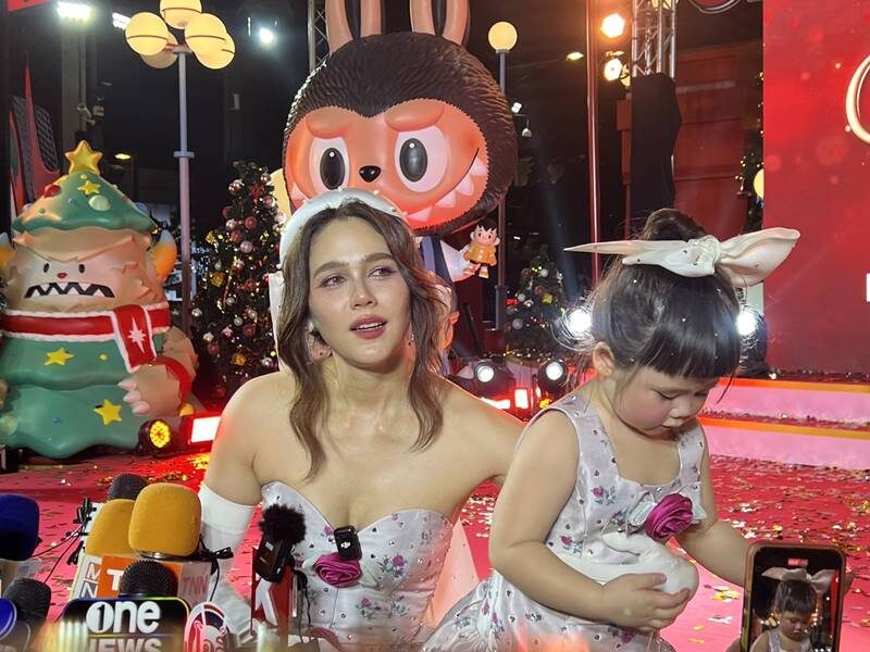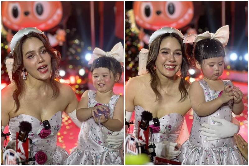 ออกงานวันนี้ดีลกับลูกสาวยังไงบ้าง? “เครียดมากเหมือนเดิมค่ะ งานมันดึกก็จะเลยเวลานอนเขาด้วย ร้อนด้วย แม่ก็จะลุ้นนิดหนึ่ง แต่ก็บรีฟกันกับป้าเจี๊ยบว่ายังไงก็ต้องนอนกลางวัน ช่วงนี้เริ่มโตแล้วก็มีนอนบ้างไม่นอนบ้าง แต่วันนี้ยังไงก็ต้องให้นอน ก็นอนมา 2 ชั่วโมง ก็ทั้งเซ่นไหว้ทุกอย่างพาไปจุ่มดีลขนม ดีลทุกอย่าง ดีลสกู๊ตเตอร์คันใหม่ลายเอลซ่า เขาก็รับรู้ แต่พอมาถึงข้างหน้าก็มีงงนิดหนึ่ง เพราะถือว่าเป็นงานใหญ่ที่สุดแล้วตั้งแต่มีคิวมา ซึ่งเขาก็ทำตามบรีฟ 80 เปอร์เซ็นต์นะคะ คะแนนสำหรับ 2 ขวบ ก็ให้ 1,000 เต็ม ให้เกินร้อยเลยค่ะ ถือว่าเก่งมาก”