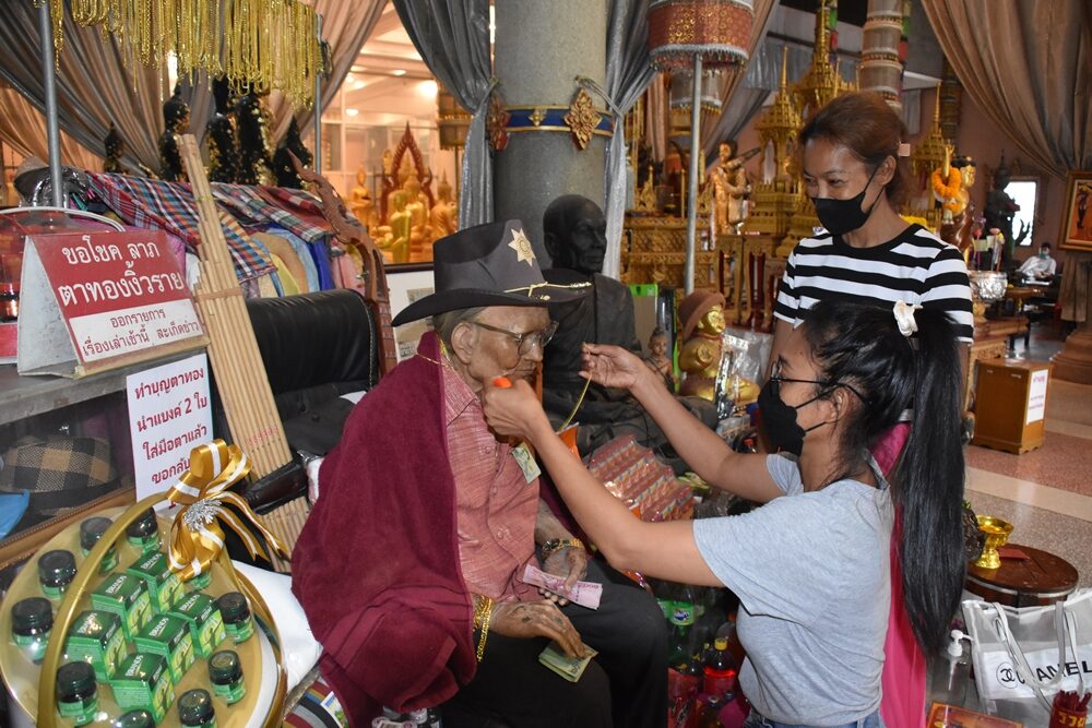 น.ส.สุนันทา วรรณศรี อายุ 32 ปี เปิดเผยว่า ตนเองเดินทางมาจากจังหวัดชุมพรมาขอโชคลาภกับพระเงินพระทองและตาทองงิ้วราย ซึ่งเชื่อว่าที่วัดสว่างอารมณ์โด่งดังในเรื่องการขอพรค้าขายที่ดินและโชคลาภ จึงตั้งใจมาขอโดยเฉพาะ ตนเองบอกขายที่ดินแต่ที่ดินดังกล่าวเกิดมีปัญหา เนื่องจากที่ดินมีขนาดใหญ่ มากถึง 40 ไร่และไม่สามารถตกลงราคากันได้ จึงเดินทางมาขอพรกับพระเงินพระทองและทองงิ้ว อธิษฐานว่าหากสำเร็จ จะนำไข่ไก่ต้มจำนวน 5,000 ฟอง ข้าวสาร 99 ถุง หัวหมูอีก 99 หัว