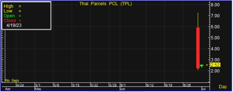 อนึ่งเมื่อวันที่ 30 มิ.ย.66 ที่ผ่านมา TPL เข้าซื้อขายในตลาดหลักทรัพย์เอ็ม เอ ไอ (mai) เป็นวันแรก และมีรายการสรุปซื้อขายกระดานรายใหญ่ (Big lot) ของหุ้น TPL จำนวน 2 รายการ ปริมาณ 25,500,000 หุ้น มูลค่ารวม 101.98 ล้านบาท ราคาเฉลี่ย 4 บาทต่อหุ้น