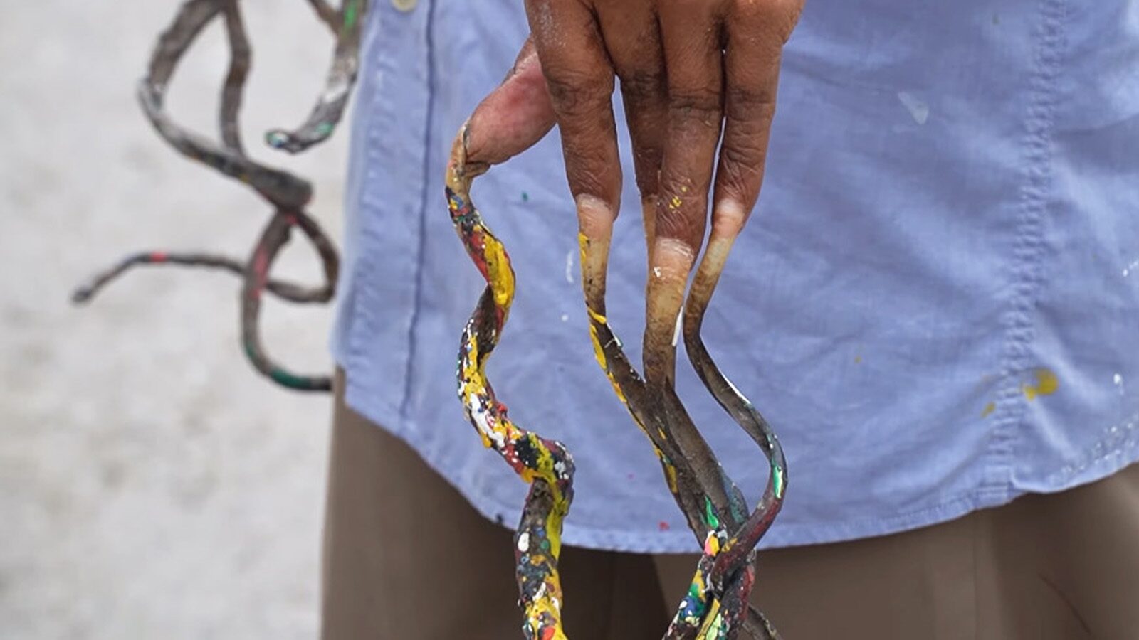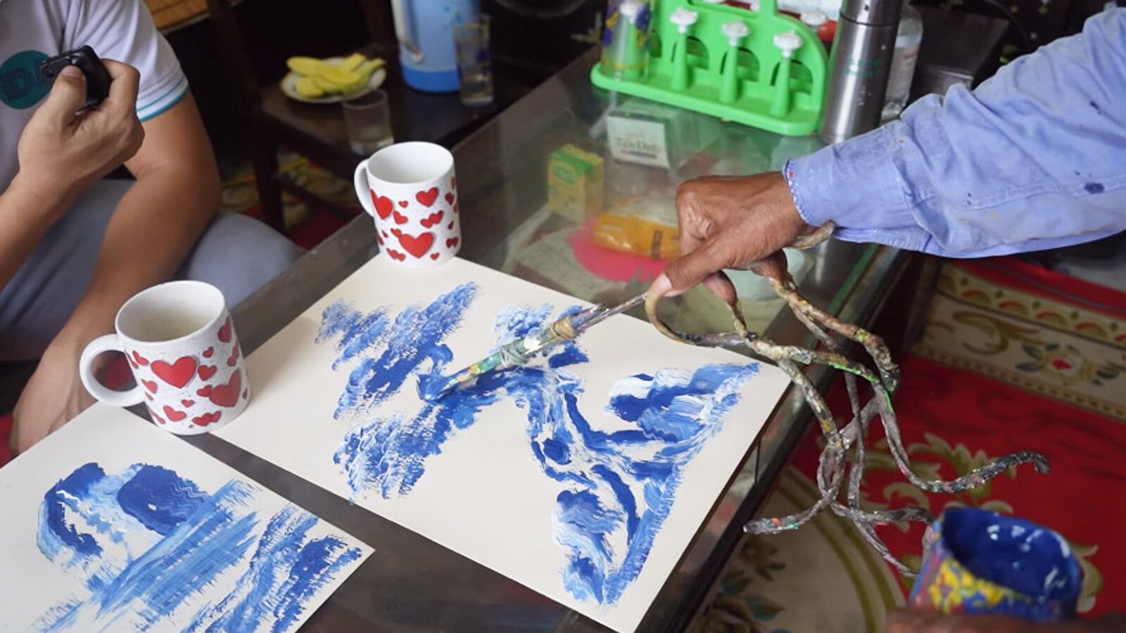 โดยตลอดเวลาที่ผ่านมา เขาไม่เคยล้างมือเลยเพราะกลัวเล็บแตกหัก เล็บของเขาจึงเต็มไปสีและเศษดินต่างๆ และถึงแม้ว่าเล็บจะยาว เขาก็ทำงานอย่างเชี่ยวชาญ วาดภาพได้ในเวลาเพียง 1 นาที และเขายังเป็นศิลปินสร้างสรรค์งานศิลปะภายในชุมชนหลายชิ้น