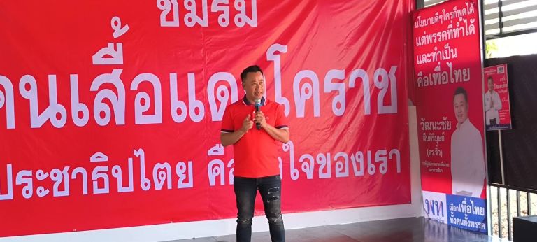 นายวัฒนะชัย หรือเสี่ยจิ๋ว กล่าวว่า สถานที่แห่งนี้ถือเป็นแหล่งรวมตัวจุดพักใจของคนเสื้อแดงเพื่อปรึกษาหารือในการขับเคลื่อนกิจกรรมทางการเมืองสนับสนุน พท.เป็นเวลากว่า 8 ปี ที่พลเอกประยุทธ์ จันทร์โอชา บริหารประเทศทำให้ชีวิตตนแทบจะวนกลับมาสู่จุดเดิมต้องทนความยากลำบาก ปรับเปลี่ยนการดำรงชีพเพื่อความอยู่รอด โดยเฉพาะผู้หาเช้ากินค่ำส่วนใหญ่ประสบปัญหาหนี้สินล้นพ้นตัว หาก พท.กลับมาบริหารประเทศจะทำให้ดัชนีชี้วัดความเชื่อมั่นของเศรษฐกิจการลงทุนดีขึ้น คนโคราชต้องเชื่อมั่นเลือก พท. เป็นรัฐบาล