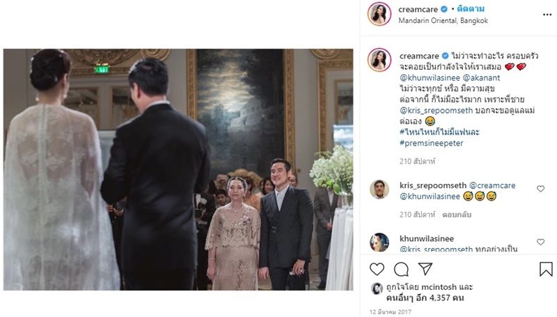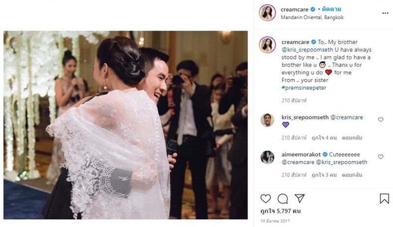 ครีม กล่าวด้วยว่า รู้จักพี่กฤษณ์ตั้งแต่สมัยนางท็อปฟอร์ม แต่ไม่ได้สนิทกัน เพิ่งมาสนิทกันช่วง 15 ปี นางหลอกให้หนูไปขายวิตามินให้นาง เลยสนิทกันตั้งแต่วันนั้น เมื่อก่อนก็เคยมีข่าวกับนาง แต่ก็ไม่มีอะไร พี่กฤษณ์ก็สนิทกับที่บ้าน ครีมก็รู้จักพ่อแม่พี่กฤษณ์