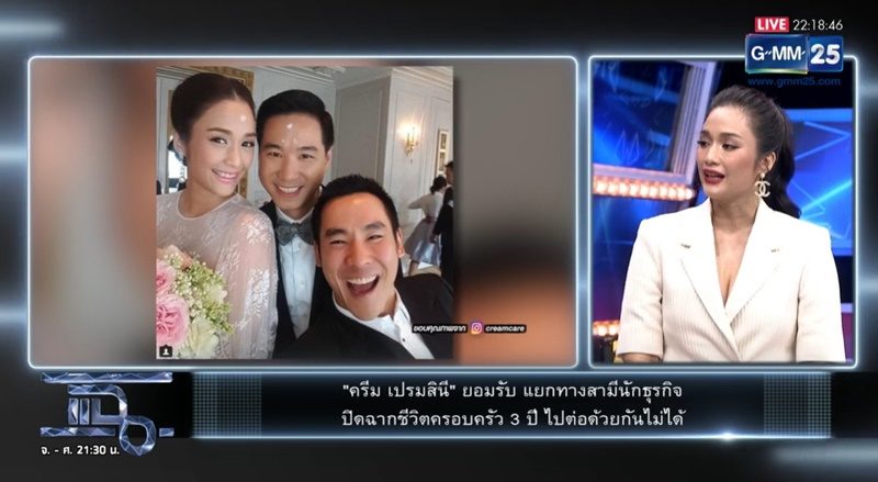 เมื่อถามสาเหตุที่แท้จริงของการแยกทางสามี ครีม บอกว่า หลายอย่าง ไม่สามารถบอกเป็นจุดๆได้ อาจเป็นอะไรที่สะสมมา แต่วันนี้เข้าใจสุดท้ายอาจจะทัศนคติไม่ตรงกัน ความคิดไม่ตรงกันแล้ว เหมือนไปต่อลำบาก แต่ไม่มีเรื่องมือที่สาม