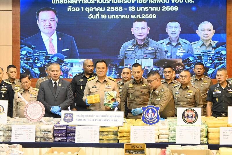 ผลการปราบปรามเครือข่ายยาเสพติด ของ ตร. ระหว่างวันที่ 1 ต.ค.68- 18 ม.ค.69 จับกุมคดียาเสพติด 89,076 คดี ผู้ต้องหา 88,421 คน ยาบ้า 330 ล้านเม็ด ไอซ์ 11 ตัน เคตามีน 1.9 ตัน เฮโรอีน 269 กก. ยาอี 2 แสนเม็ด โดยยึดทรัพย์รวมมูลค่า 3,396 ล้านบาท
