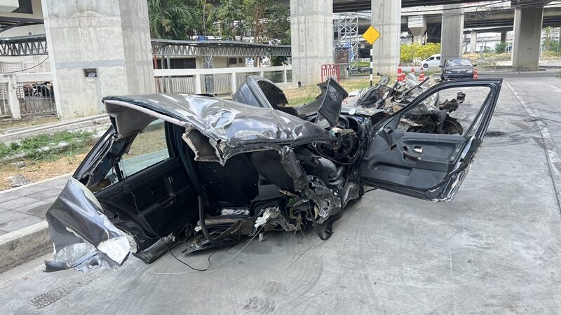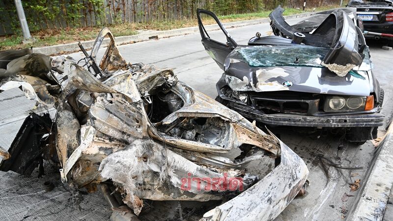 - อ่านข่าว : BMW พุ่งเสยท้ายแท็กซี่ รถพังยับส่วนท้ายขาดกระเด็น ไฟไหม้วอด บนทางด่วนศรีรัช