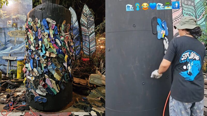 ร้านอาหารไอเดียดี! นำ ‘รองเท้าแตะ’ มาทำเป็นผลงานศิลปะ สุดเท่ ไม่ซ้ำใคร พร้อมเซ็นชื่อกำกับ ลดปัญหาขยะ ที่ เกาะล้าน ชลบุรี โซเชียลชื่นชม