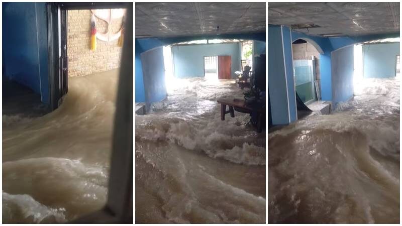 ยะลาอ่วม เผยนาทีระทึก กระแสน้ำทะลักเข้าบ้านรุนแรง ซัดผนังบ้านพัง
