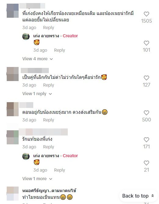 ด้านเก่ง เองก็ได้แจงชัดแล้วว่า ปัจจุบันอยู่สถานะไหน เพราะมีแฟนคลับได้เข้ามาคอมเมนต์ถามไว้ว่า "มีโอกาสรีเทิร์นไหมคะ"เก่งเข้าไปคอมเมนต์ตอบไว้ว่า "ไม่คราฟ" งานนี้จะเรียกว่าดับฝันแฟนคลับเลยหรือไม่นั้นก็คงต้องดูกันต่อไปก่อน