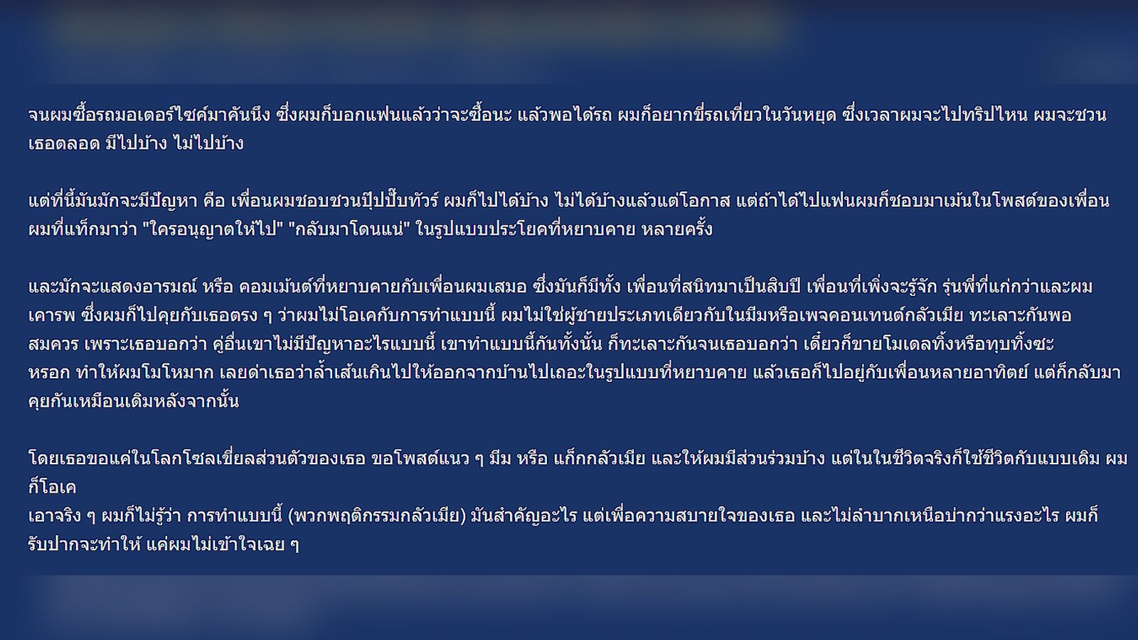 หนุ่มสุดอัดอั้น ขอตั้งกระทู้ระบาย-ถามความเห็น หลังแฟนชอบให้ทำตัวกลัวเมีย เหมือนคอนเทนต์ที่ปรากฏอยู่ตามโซเชียล งานนี้ชาวเน็ตมาตอบเพียบ!