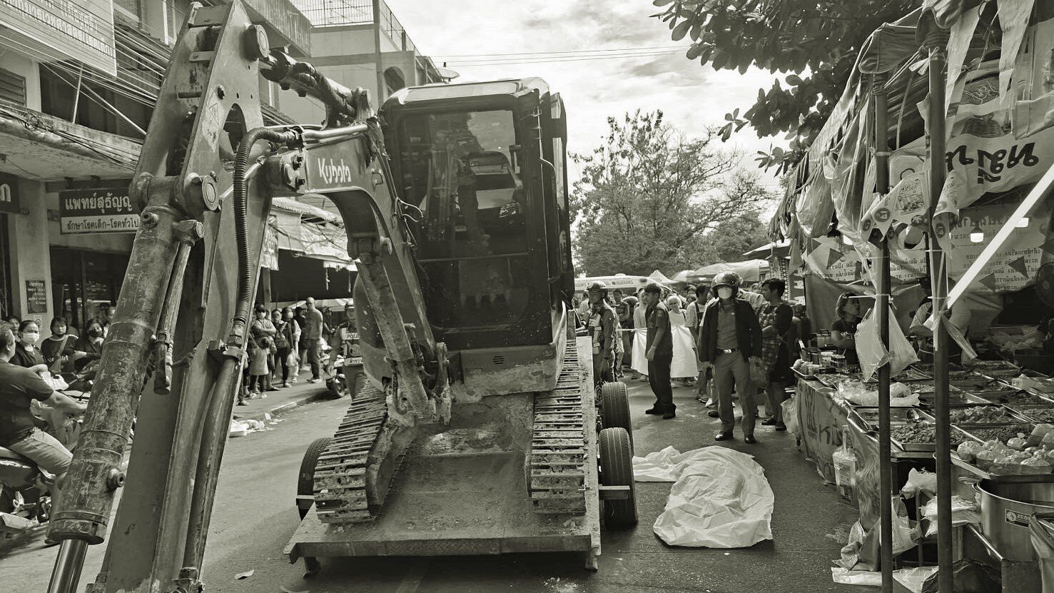 หญิงเดินซื้ออาหารเจ โดนรถกระบะบรรทุกแบคโฮทับเสียชีวิต กลางเมืองนครปฐม