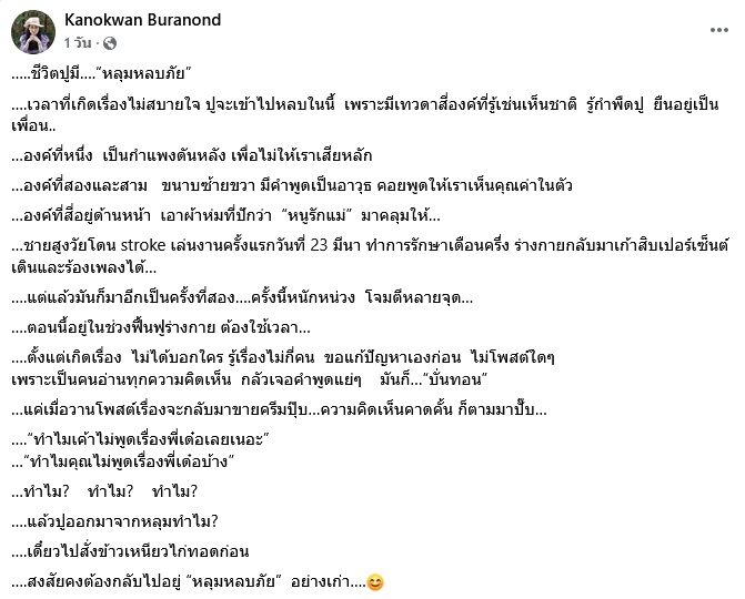 ล่าสุด ปู กนกวรรณ โพสต์ภาพตัวเอง พร้อมข้อความยาวระบายถึงชีวิตด้วยว่า