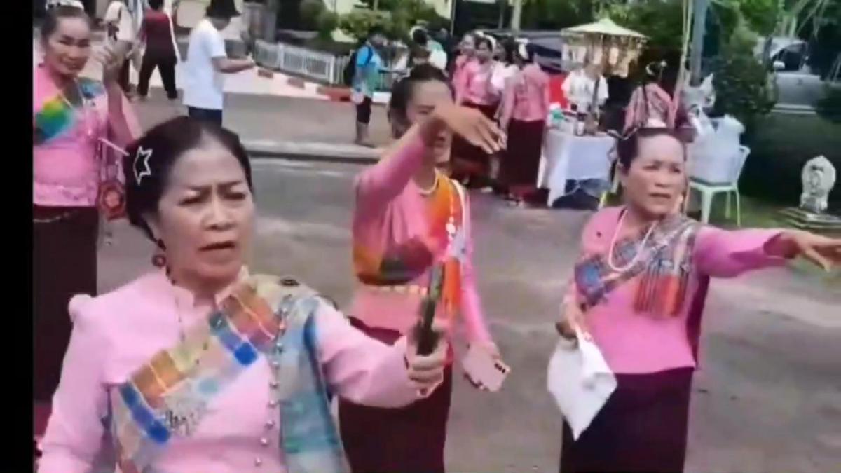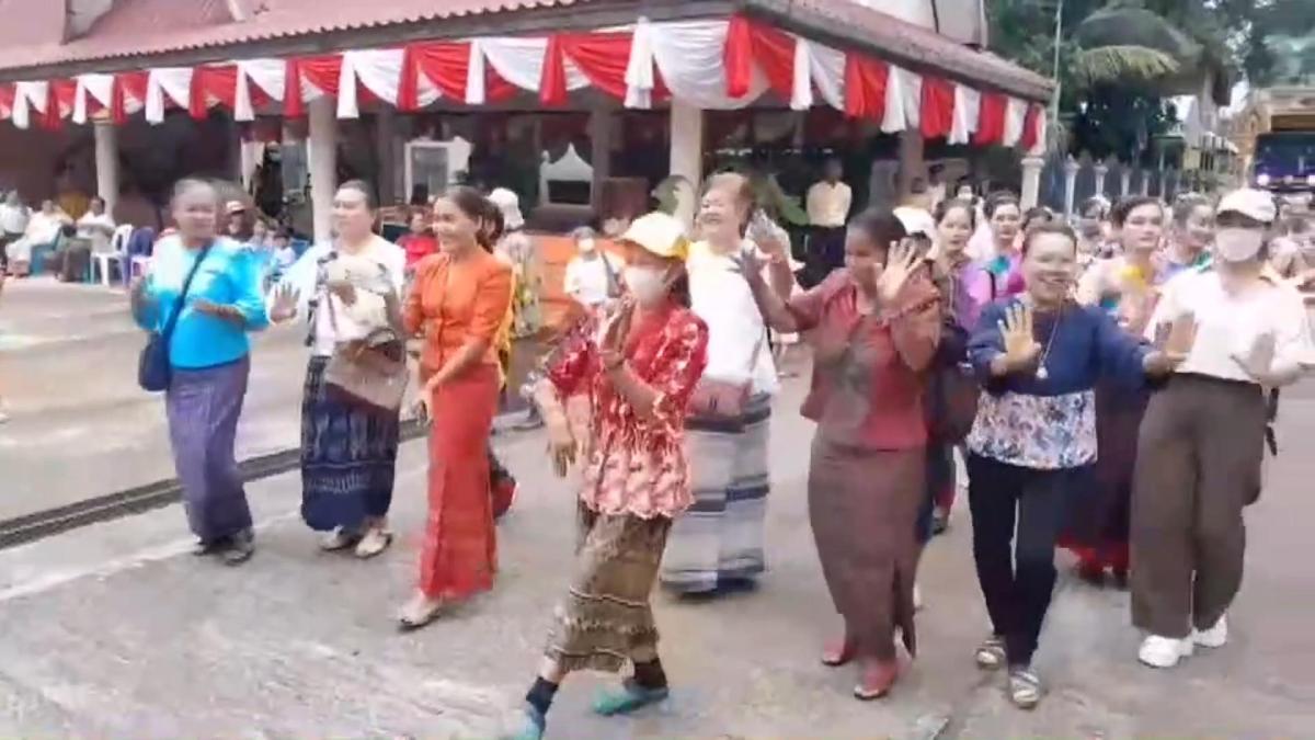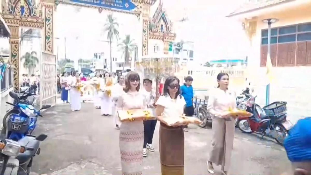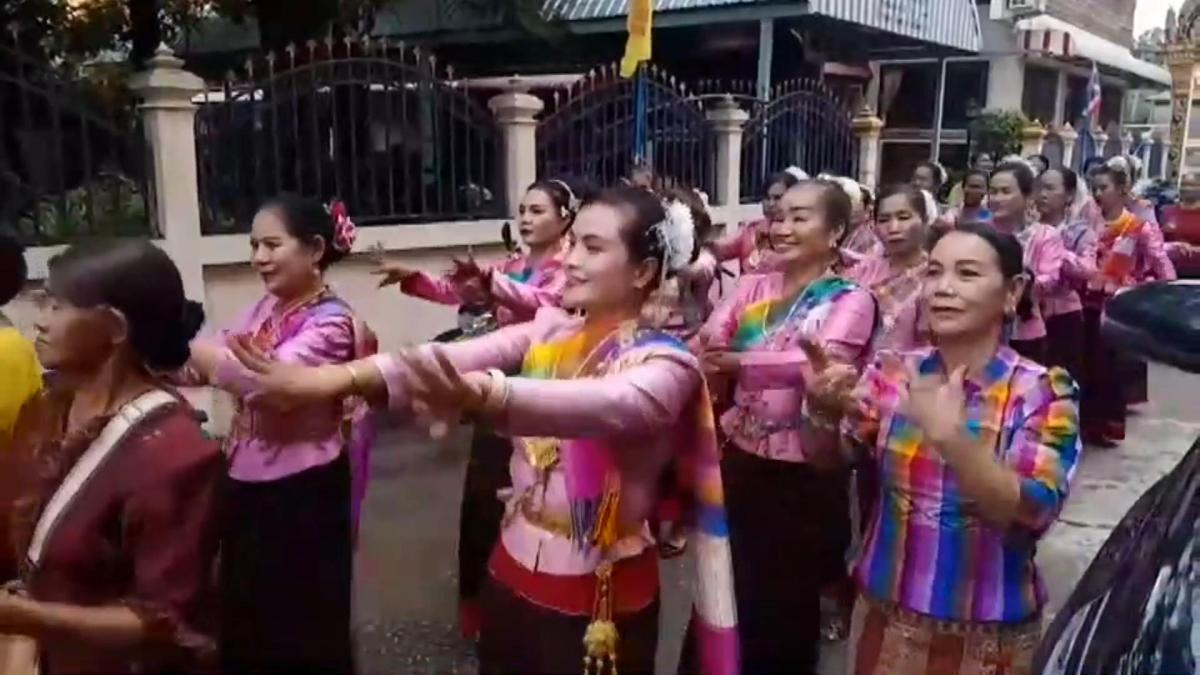 และจะมีการแห่ขบวนฟ้อนรำสนุกสนาน โดยมีเปิดเครื่องเสียงเปิดเพลงแห่ขบวนฟ้อนรำ เต้นแห่ขบวนกองบุญกฐินรอบพระอุโบสถวัดให้ครบ 3 รอบ ก่อนที่จะนำถวายกฐินให้กับวัดได้ แต่ปีนี้ขบวนแห่กฐินผ่านไปได้ 1 รอบ เมื่อจะเข้ารอบที่ 2 ที่ชายคาหลังคาพระอุโบสถ ซึ่งมีรังผึ้งหลวงขนาดใหญ่อยู่ 1 รัง ไม่รู้ว่าผึ้งหลวงในรัง อยากร่วมแห่ขบวนกองบุญกฐินในปีนี้ด้วยหรืออย่างไร หรือตื่นเสียงตื่นคนที่มาแห่กฐินกันจำนวนมากก็ไม่ทราบได้ ฝูงผึ้งหลวงได้แตกรังออกมารุมต่อยบรรดาผู้ร่วมในขบวนแห่กองบุญกฐิน ทั้งชาย หญิง สาวสวยในขบวนแห่ฟ้อนรำในกองบุญกฐิน ต้องพากันวิ่งหนีแตกกระเจิ่ง ที่ส่วนใหญ่ก็พากันวิ่งหนีได้ทัน