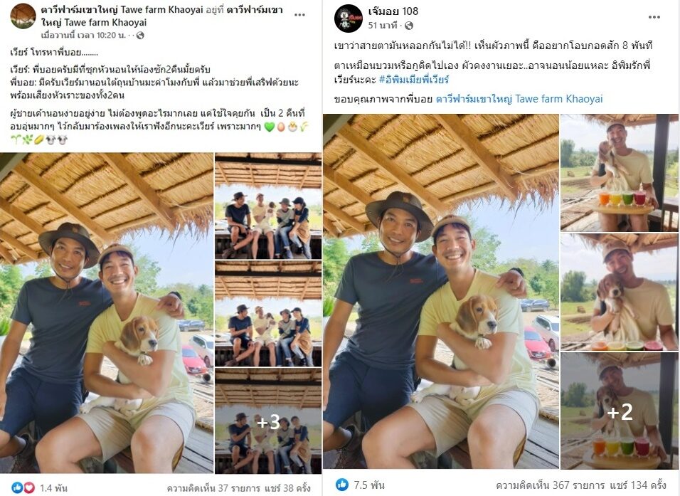โดยเพจเฟซบุ๊ก ตาวีฟาร์มเขาใหญ่ เผยภาพหนุ่มเวียร์ที่เขาใหญ่กับน้องหมาน่ารัก พร้อมเล่าเรื่องราวว่า เวียร์ โทรหาพี่บอย……..