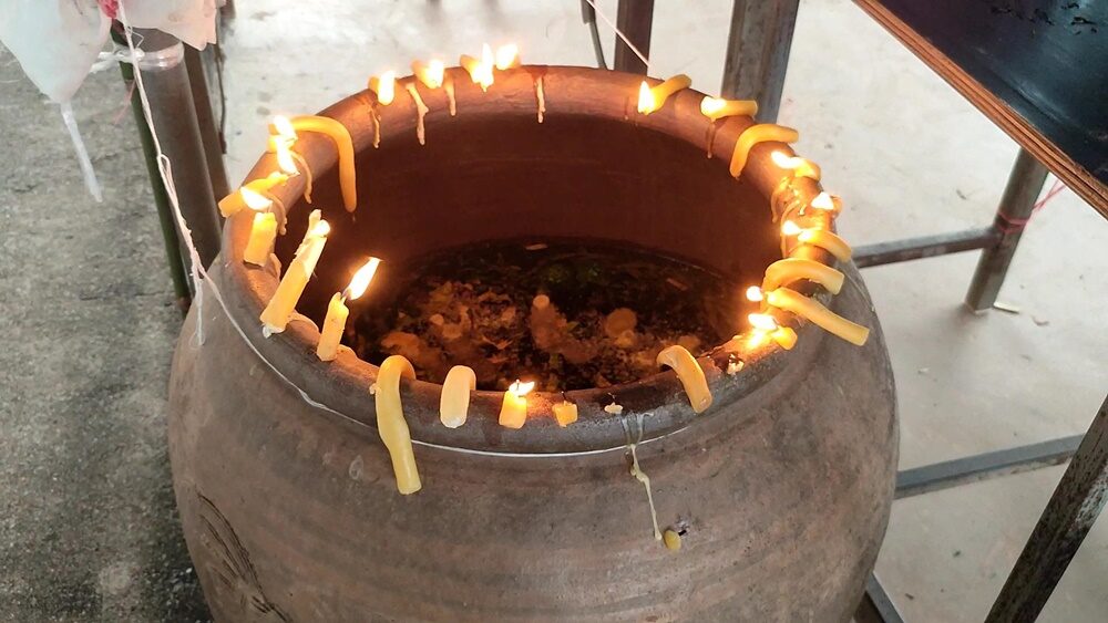 ขณะเดียวกัน หลังเสร็จสิ้นพิธีโบราณอันศักดิ์สิทธิ์ ผู้ที่มาร่วมในงาน ต่างไม่พลาด เมื่อมีคอหวยตาดี สังเกตเห็นหยดน้ำตาเทียน ในโอ่งน้ำมนต์ปรากฏตัวเลขลอยเด่นชัด มองเห็นเป็นตัวเลขหลายตัว เมื่อชาวบ้านทราบดังนั้น ต่างพากันฮือฮา และเข้ามาส่องดูตัวเลข ต่างก็ไม่ผิดหวัง