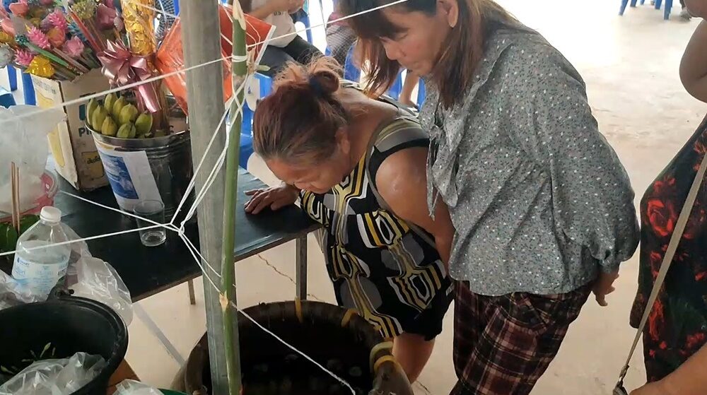 ชาวบ้านฮือฮา แห่ส่องเลขเด็ด 2 ตัวตรง โผล่โอ่งน้ำมนต์ งานประเพณีโบราณ บุญกลางบ้าน บางคนเซ็งมองยังไง ก็ไม่เห็นตัวเลข แล้วแต่โชค