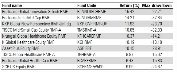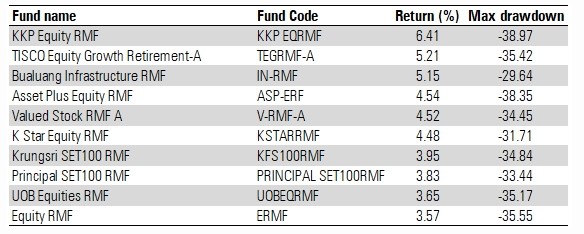 10 อันดับผลตอบแทนกองทุน RMF Equity ย้อนหลัง 1 ปี