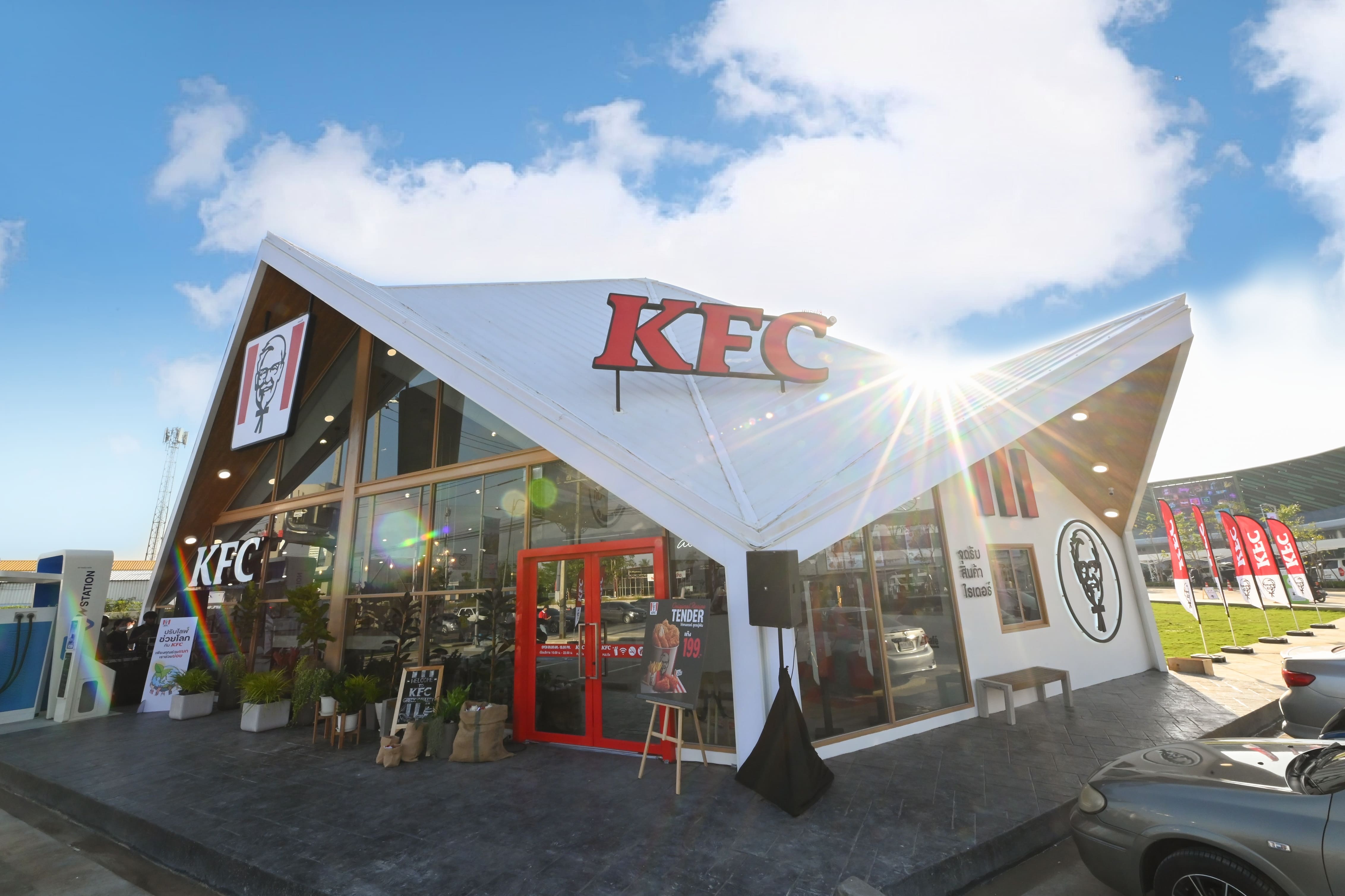 นอกจากนี้ ยังได้ทดลองเปิด KFC Green Store Concept สาขาต้นแบบที่โรบินสันราชพฤกษ์ ซึ่งเป็นร้านสแตนด์อโลนอยู่นอกศูนย์การค้าเพื่อจับเทรนด์ ESG หรือความยั่งยืน โดยได้ออกแบบในสไตล์นอร์ดิกสื่อถึงการอยู่ร่วมกับธรรมชาติ โดยโครงสร้างร้านและวัสดุก่อสร้างจะเน้นเลือกใช้ที่ส่งเสริมความยั่งยืน อาทิ กระจกประหยัดพลังงานในระดับสูงสุด, การเลือกใช้เฟอร์นิเจอร์ที่ทำจากวัสดุรีไซเคิล, ชุดพนักงานที่ตัดเย็บด้วยผ้าจากเส้นใยขวดพลาสติก การปรับเปลี่ยนบรรจุภัณฑ์ที่เป็นมิตรกับสิ่งแวดล้อม