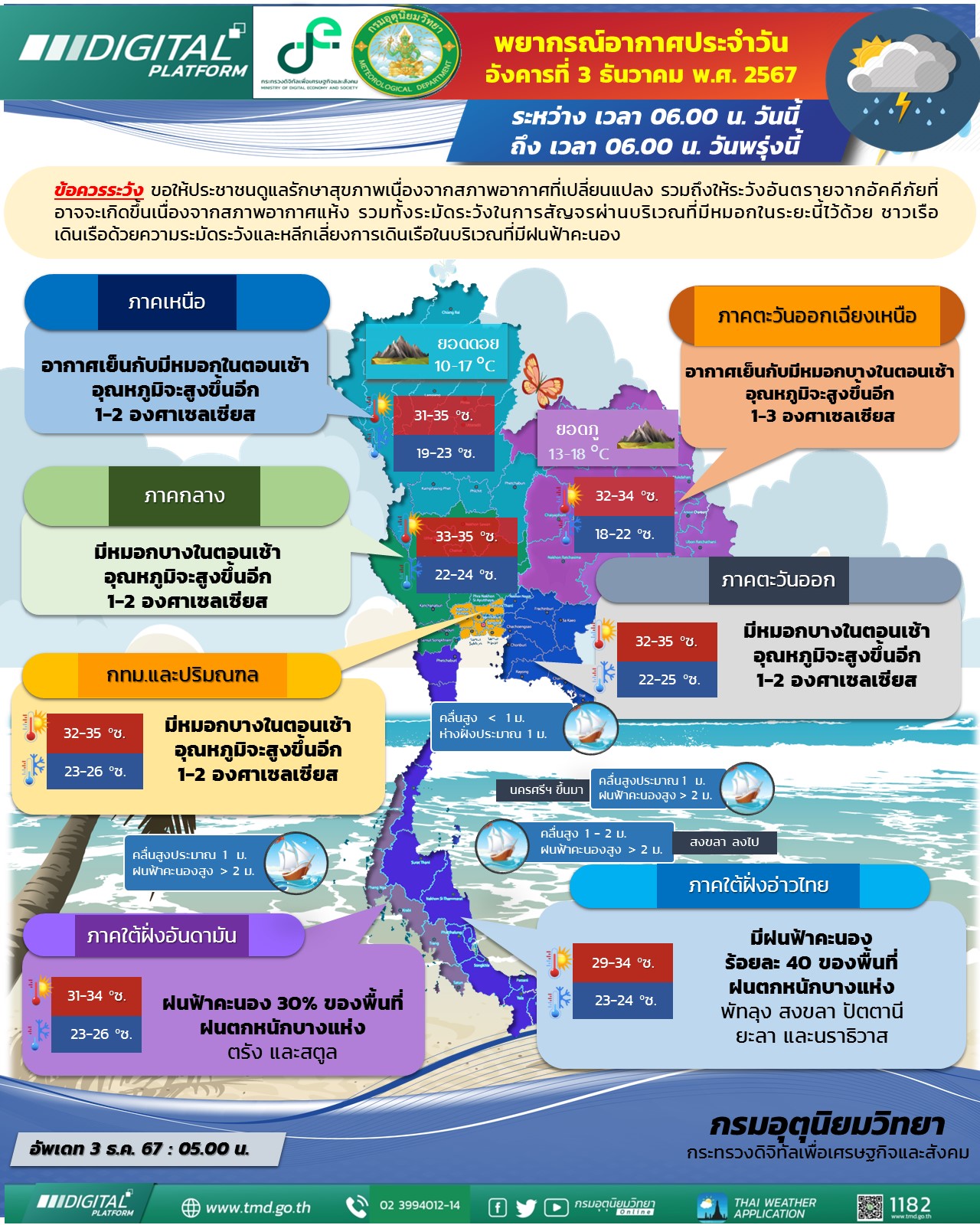 ลักษณะอากาศทั่วไป 3 ธันวาคม 2567