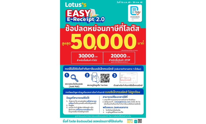 แม็คโคร-โลตัส ขานรับ ‘Easy E-Receipt 2.0’ ชวนช้อปลดหย่อนภาษีสูงสุด 50,000 บาท พร้อมขนทัพสินค้าจัดแคมเปญ รับส่วนลดและสิทธิประโยชน์มากมาย