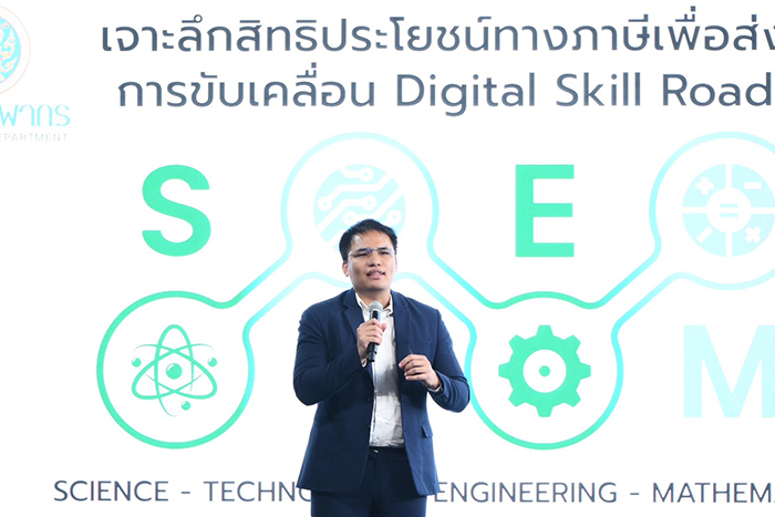 ทั้งนี้ ภายในงานยังมีการเสวนาในหัวข้อ ‘Skill Matters: ทักษะดิจิทัลที่โลกต้องการ คนไทยต้องมี’ โดยผู้บริหารจากบริษัทเทคโนโลยีระดับโลก ได้แก่ คุณสุภารัตน์ จูระมงคล ผู้อำนวยการ การพัฒนาทักษะเอไอ บริษัท ไมโครซอฟท์ (ประเทศไทย) จำกัด และ คุณวารุณี รัชตพัฒนากุล หัวหน้าฝ่ายนโยบายสาธารณะ เอเชียแปซิฟิกและญี่ปุ่น บริษัท SAP พร้อมด้วยผู้บริหารจากบริษัทเทคโนโลยีชั้นนำในประเทศ ได้แก่ คุณอรนุช เลิศสุวรรณกิจ ประธานเจ้าหน้าที่บริหารและผู้ร่วมก่อตั้ง บริษัท เทคซอส มีเดีย จำกัด และ คุณโอชวิน จิรโสตติกุล ประธานเจ้าหน้าที่บริหารและผู้ก่อตั้ง FutureSkill รวมถึงการบรรยาย ‘เจาะลึกสิทธิประโยชน์ทางภาษีตามกรอบ Digital Skill Roadmap’ โดยคุณกัสภณ สิงห์ประเสริฐ นักวิชาการภาษี ชำนาญการพิเศษ กรมสรรพากร